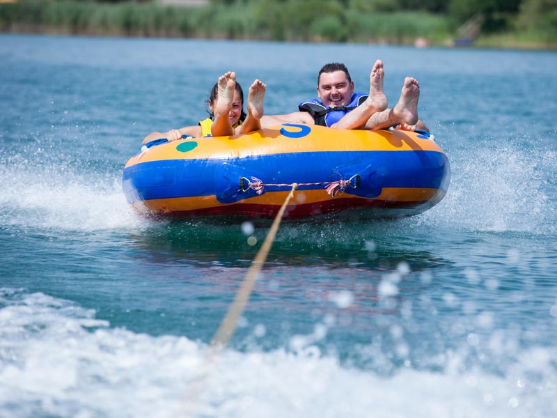 Si lo prefieres, disponemos de todos los extras para tu lancha en Portocolom y hacer de este día, el más divertido, de tus Vacaciones, Banana de 5 plazas, Donut de dos plazas, Snorkel para Buceo, Skys y Wake Board. Incluidos Gratis en el Alquiler de tu barco* en Porto Colom - Mallorca.